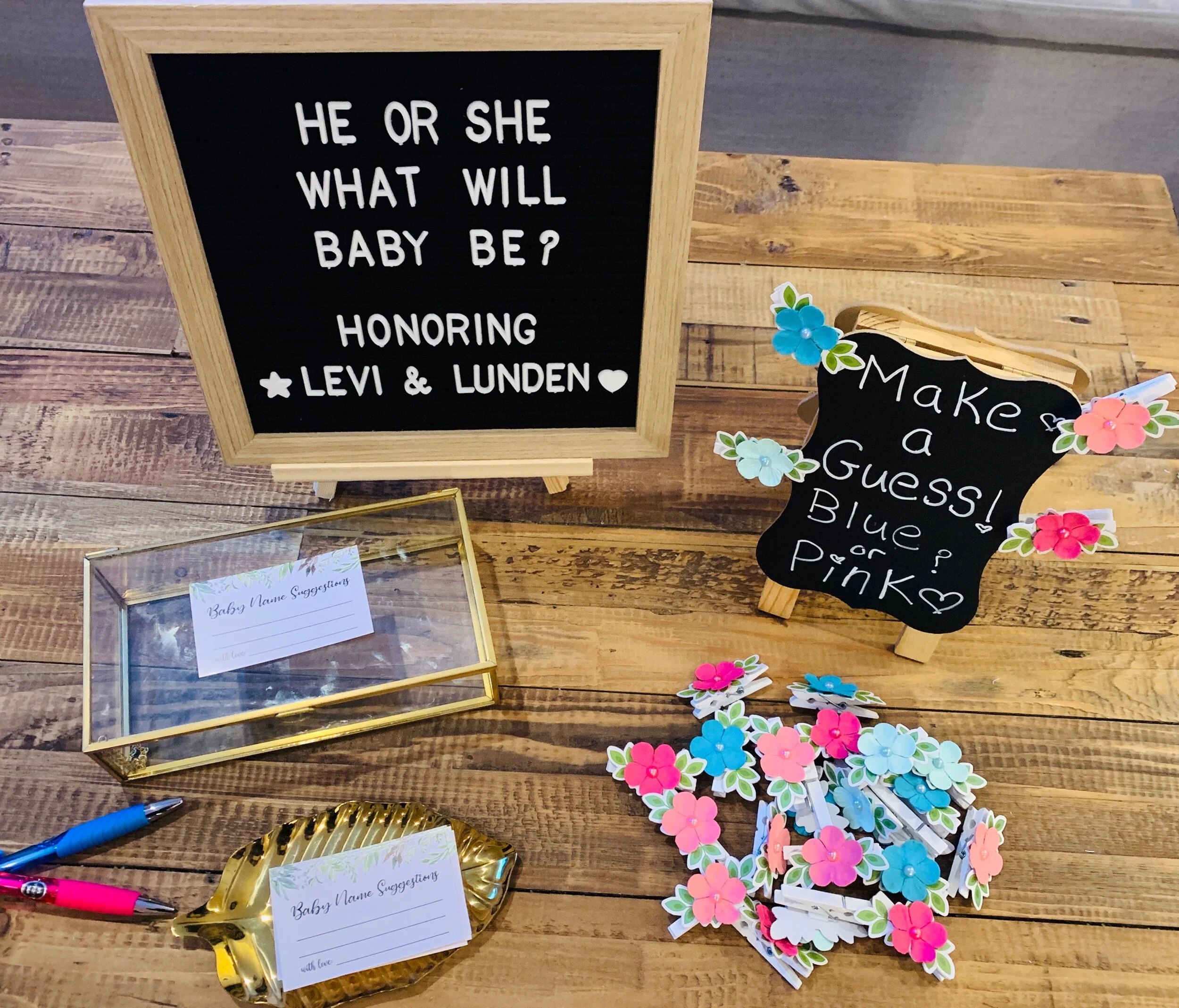 I recently organized our gender reveal party and we did a few fun DIY’s including a unique way to find out the gender! See below!