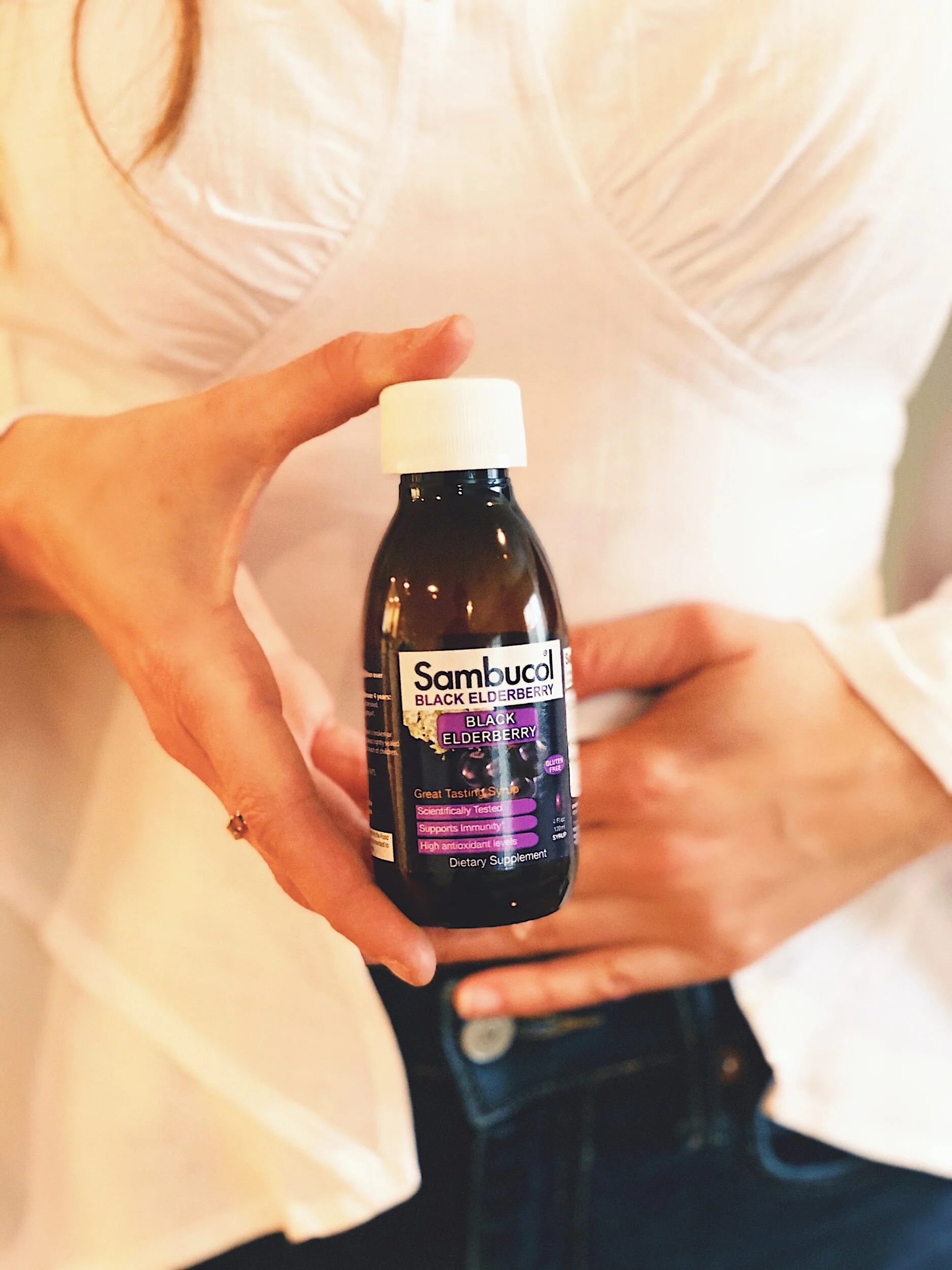 Right when I feel the slightest cold symptoms coming and my throat starts to get a tickle I take Sambucol Black Elderberry syrup. It soothes and stops it in its’s tracks!